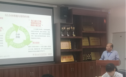 首先,工程学院院长向凤红从学院概况、办学思路与领导作用、师资队伍和专业课程建设等方面详细介绍了工程学院本次评估的准备工情况。电气工程及其自动化专业教师李平,从专业概况及建设和就业情况等方面做了补充剖析汇报。